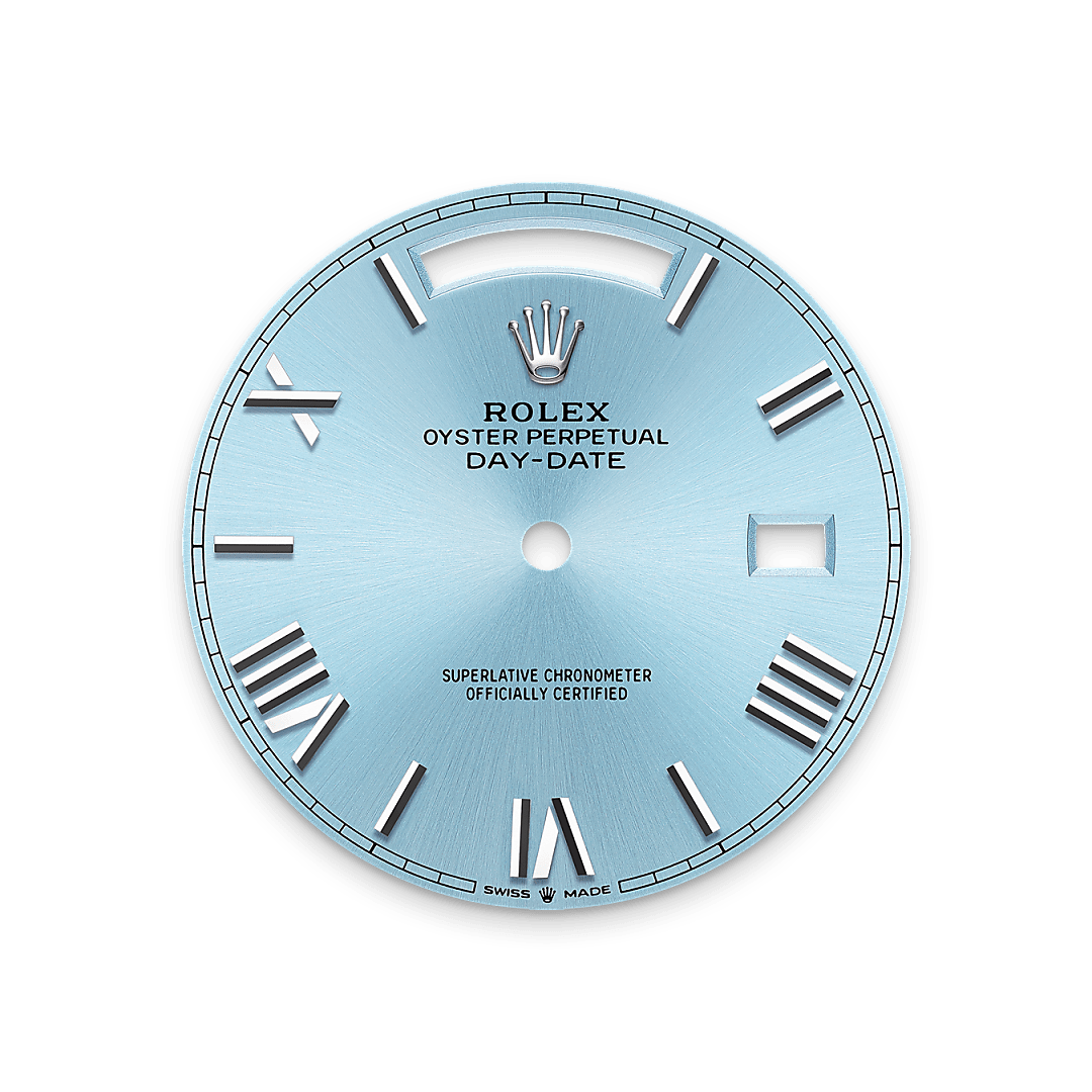 Buz mavisi kadran, platin Rolex saatlerin kendine özgü ve gizli imzasıdır. Rolex, en iyi saatler için metallerin en asili olan platini kullanmaktadır. Bu özel kadran rengi sadece Day-Date, Cosmograph Daytona, Perpetual 1908 ve Land-Dweller saatlerinde bulunur.